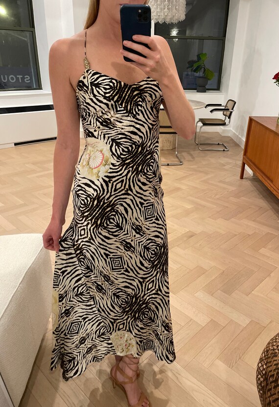 Roberto Cavalli Zebra Floral Multi Print Silk Slip Dress Size Small Etsy